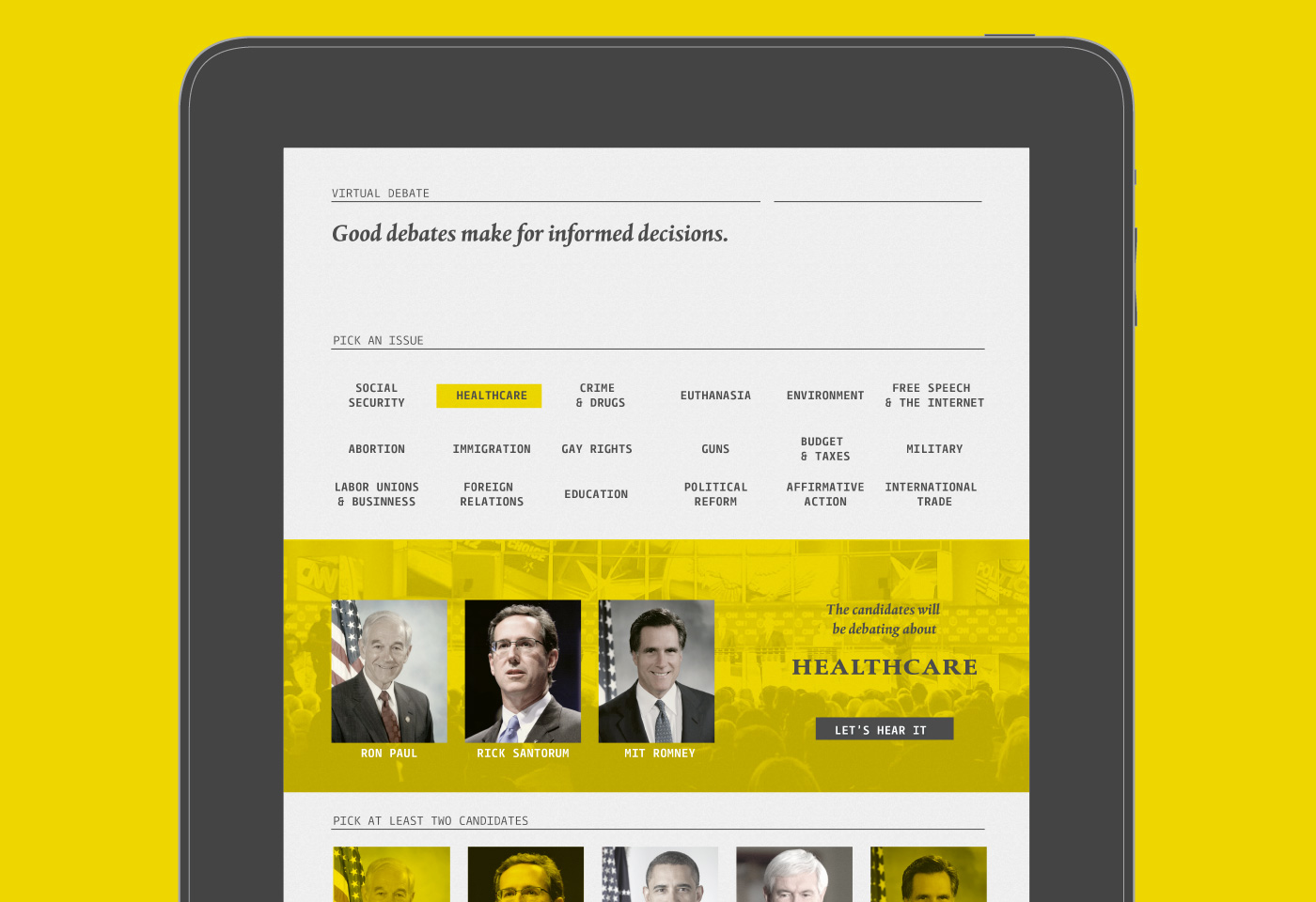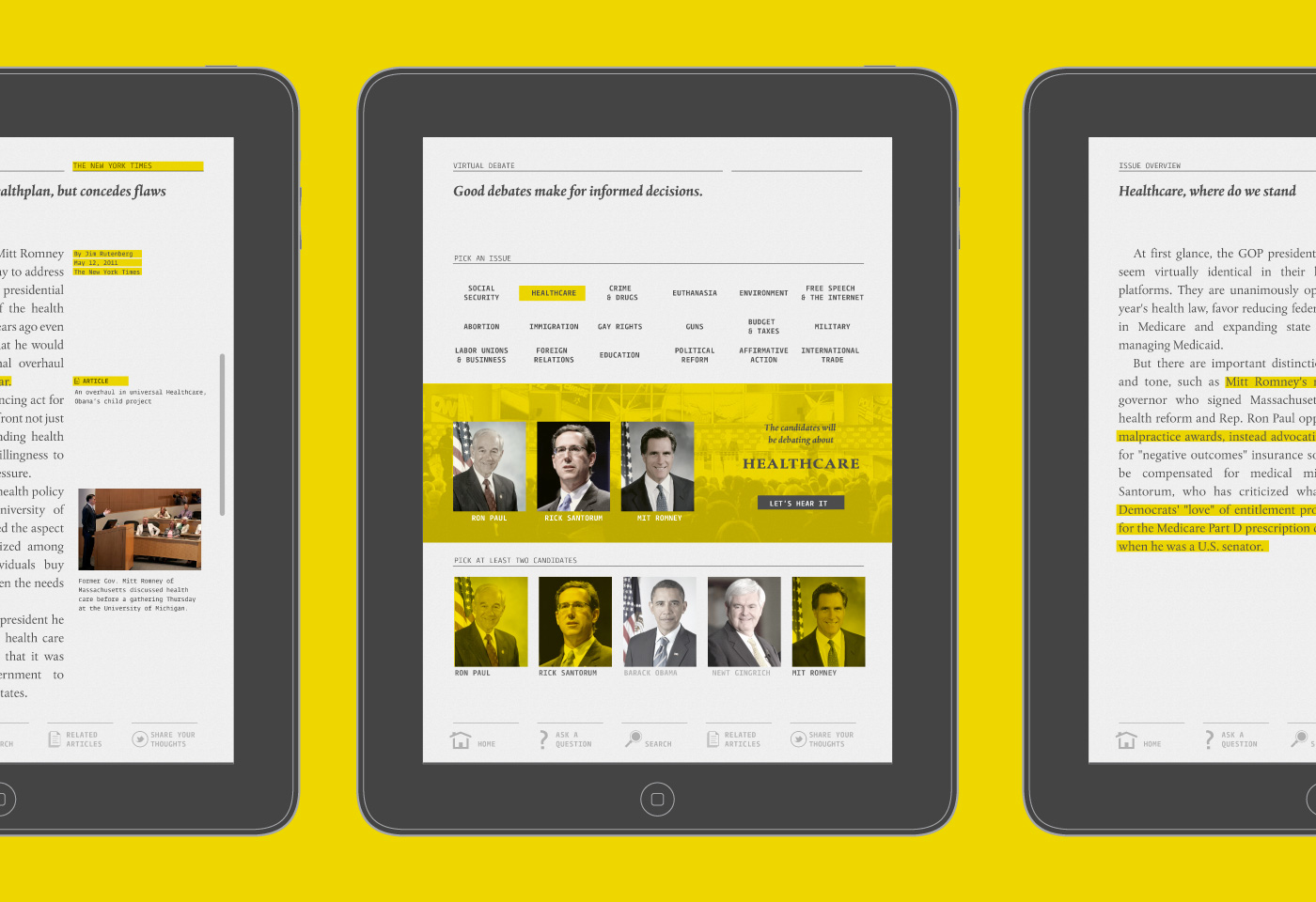 Open Caucus is a politically independent non-partisan app that keeps young voters informed and involved with elections. Open Caucus allows for in-depth analysis of economic, social, cultural and political issues and connects voters with relevant information about them.