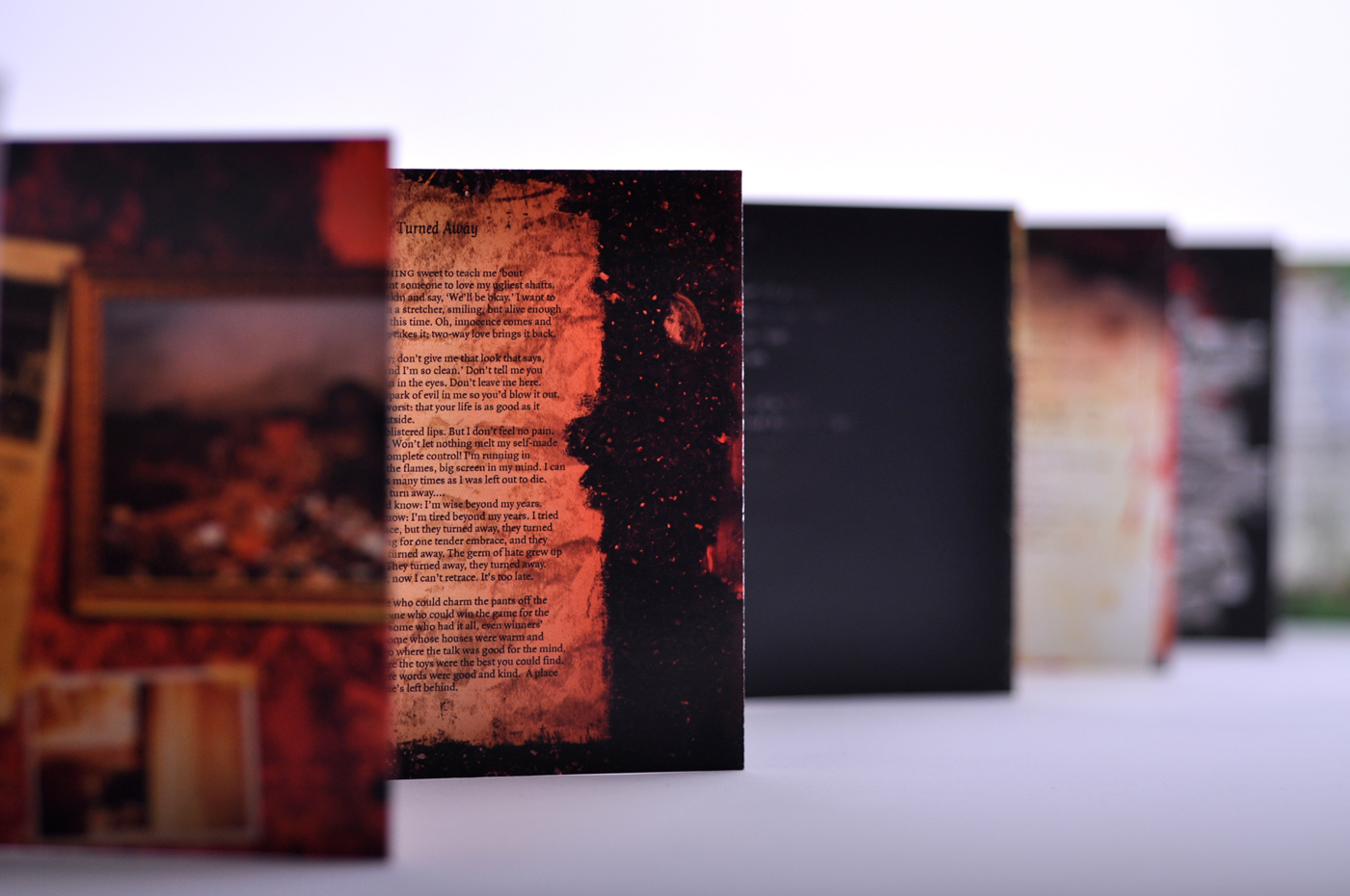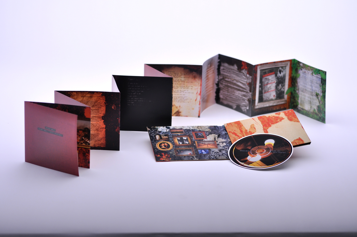 Ethan Gold was interested in a textural interpretation of each song for the lyrics booklet. The spreads were developed with the client’s close involvement in the creative process as well as the team’s exploration of different methods to push both physical and digital mediums that resulted in a breadth of work that expanded over the period of eighteen months.